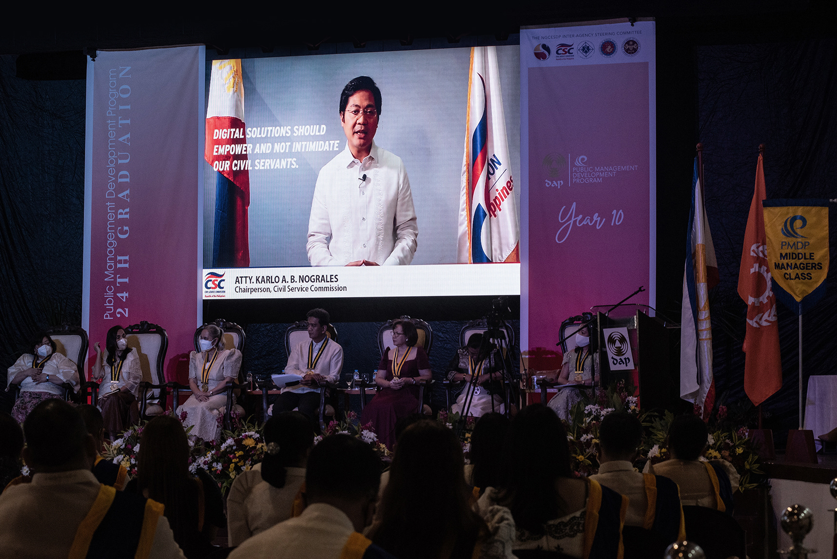 Graduation ceremonies of scholars of Public Management Development Program (PMDP) of the Development Academy of the Philippines, composed of senior executives and middle managers of the government across the nation